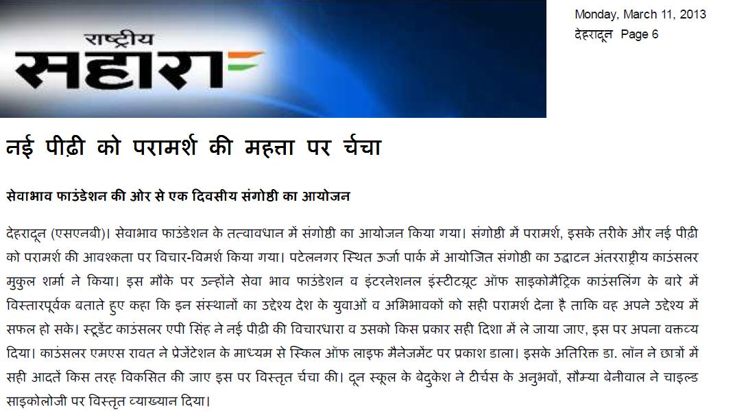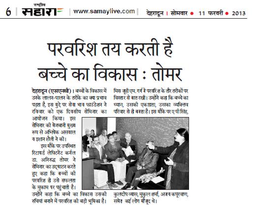 Sewa Bhav Foundation, Postal Address: 201 THDC Colony, Lane No - 21, Banjarawala, Dehradun - 248 001, Uttarakhand