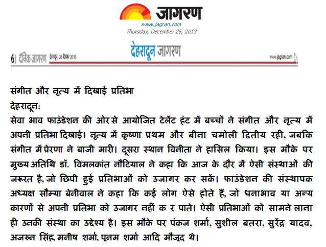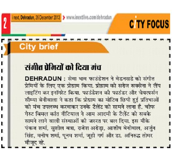 Sewa Bhav Foundation, Postal Address: 201 THDC Colony, Lane No - 21, Banjarawala, Dehradun - 248 001, Uttarakhand